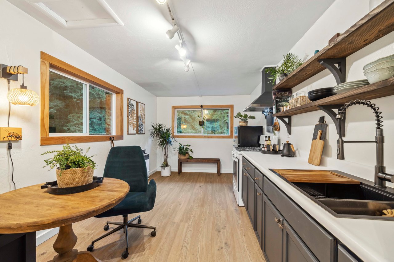 Nestled on over 6 acres in a peaceful neighborhood, this stunning 3-bed/ 2.5-bath home offers a perfect blend of comfort, functionality, and charm. The spacious, well-designed kitchen is a dream for both home chefs and entertainers, providing ample room for multiple cooks to work together. Meanwhile, the bar area, complete with sliding glass doors leading to the patio and pool, is an ideal spot for mixing cocktails and hosting unforgettable summer gatherings. The living room features an oversized fireplace perfect for curling up on rainy days, vaulted ceilings with exposed beams, and expansive windows that bring in bountiful natural light. Outside, the meticulously landscaped grounds are a gardeners paradise, with mature flowers, raised beds, and lush greenery. In addition to the pool, the property offers ample parking options, including a two-car garage, an oversized driveway, and room for large vehicles like RVs or boats. Homes of this caliber rarely hit the marketdont miss your chance to make this remarkable property your own!